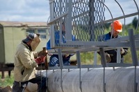 Генподрядчик – ООО «Стойгазмонтаж» - выполняет последние «штрихи». В нескольких сотнях метров, на границе города, уже готов ПГБ – понижающий газовый блок. Это именно на нем во время торжественной церемонии откроют вентиль и зажгут символический факел. Улица 2-я Производственная, кирпичная пятиэтажка. Здание опоясано трубами и почти готово к приему газа. А на Юбилейной рабочие только что вырыли траншею, здесь трубы пойдут под землей. Мазалов и Ершов по-хозяйски следят за тем, как идет сварка, по ходу делают рабочим какие-то замечания.